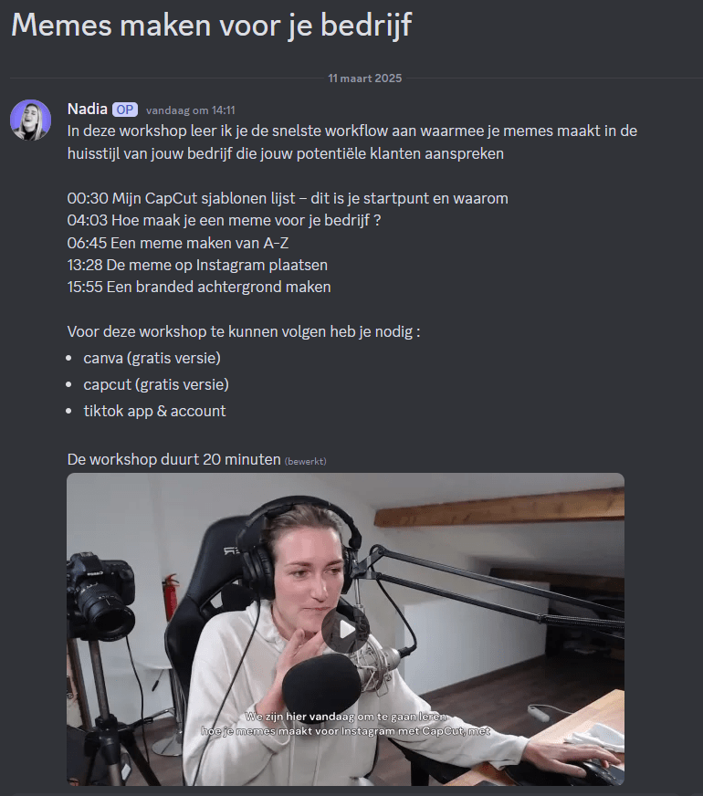 Met al meer dan 14 WORKSHOPS die je direct kunt bekijken in een overzichtelijk database in de discord community zelf :