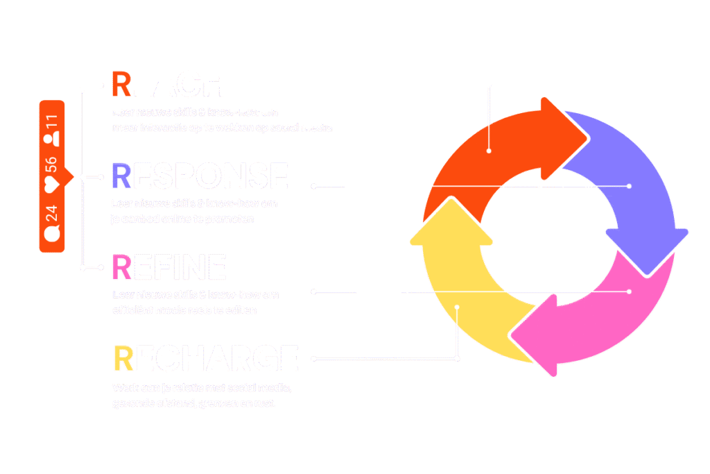 De 4·R – methode is een cyclus die bestaat uit 4 thema’s die nodig zijn om een online personal brand te bouwen die past bij jou, je ideale klant en je aanbod.